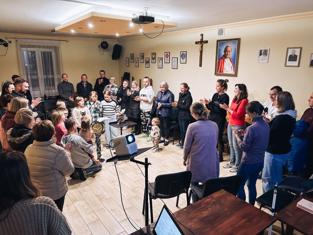 Kolejnym etapem spotkania była modlitwa uwielbienia, podczas której oddawano chwałę Bogu poprzez śpiew, modlitwę serca i spontaniczne wezwania. W tym czasie do wspólnej modlitwy dołączyły również dzieci, którymi przez cały wieczór opiekowała się diakonia dziecięca. Jej posługa umożliwiła rodzicom pełne uczestnictwo w wydarzeniu.